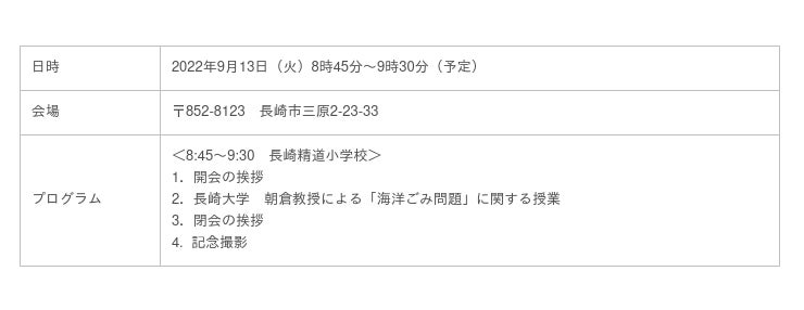 2022年9月13日(火)8時45分~9時30分 <長崎精道小学校>