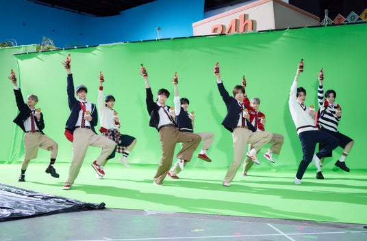 明るい表情で元気よく「よろしくお願いします!」の挨拶とともに、カメラに「頑張ります!」のポーズをしながら現場入りした&TEAMの皆さん。撮影監督と打ち合わせを行い、メンバー一人ずつの飲食シーン撮影では、皆さん各々が「コカ・コーラ」の爽快感やチキンのジューシーな美味しさを表現して、スタジオ内では「美味しそう!」という声が上がりました。カメラが止まると真剣な表情で自分の映像をチェックし、チェック後に思わず笑ってしまうなど、緊張感がありながらも和やかな雰囲気で撮影が進んでいきました。撮影が進んでいくにつれて徐々に緊張もほぐれ、撮影の合間には小道具を使ってEJさん、YUMAさん、JOさんがキャッチボールをしたり、KさんとNICHOLASさんは立体パズルゲームで遊ぶなど、仲の良さが垣間見えました。ダンスシーンの撮影では圧巻のキレッキレダンスを披露。メンバー同士で振付の確認を行い細部の動きまでこだわりを見せ、最初のダンスシーンはまさかの一発OK。息ぴったりのダンスにカメラが止まるとスタジオ内には拍手が響きました。映像チェックでは全員で確認を行い、「めっちゃいいね!」と声を上げメンバー間で盛り上がりを見せていました。