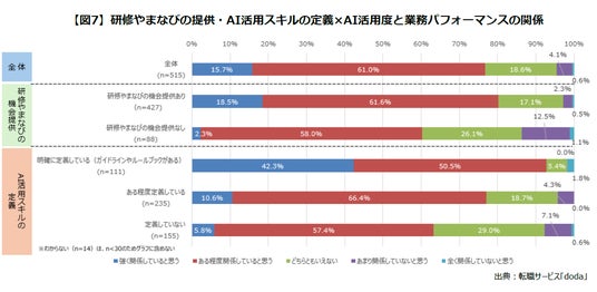 【図7】研修やまなびの提供・AIスキルの定義×AI活用度と業務パフォーマンスの関係