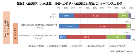 【図8】AI活用スキルの定義・評価への反映×AI活用度と業務パフォーマンスの関係