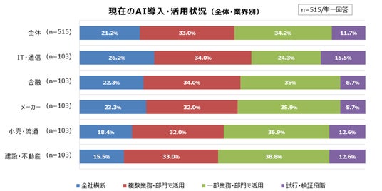 現在のAI導入・活用状況(全体・業界別)