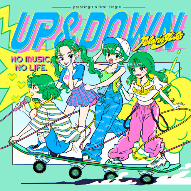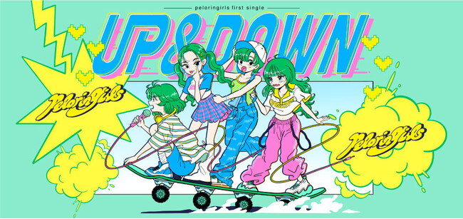 第1弾コラボレーションとなるのは、佐藤なつみ。90年代を彷彿させる平成レトロな作風がソーシャルメディアなどで人気となり、ミュージックビデオをはじめアパレルや化粧品とのタイアップを担当しています。彼女が今回描き下ろしたペロリンガールズは、“山あり谷ありの人生でも諦めず進んでいこうよ!”という若者へのメッセージを込めた楽曲「UP&DOWN」をシングルリリースする架空の4人組ガールズバンドです。