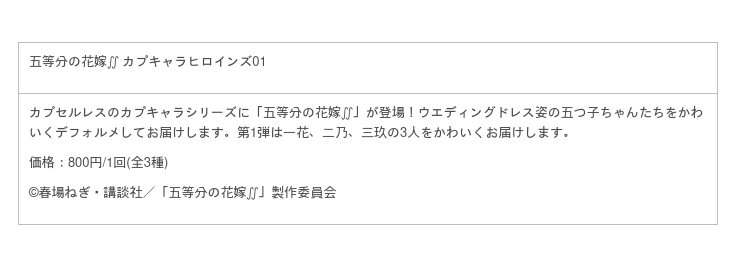 1:バンダイのカプセルトイ新商品をすべて取りそろえている!