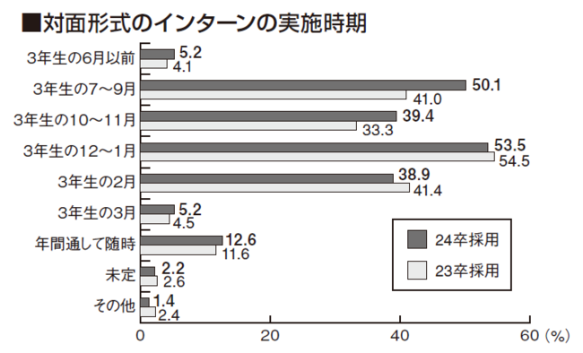(1)「3年生の夏や秋」にインターンシップを実施した企業が増加。早期化が進む