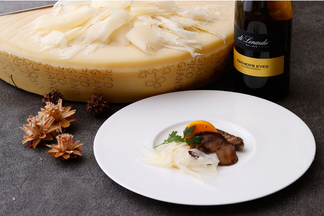 イタリアンソーセージ“サルシッチャ”と味わい深いアワビ茸のコンフィに、クリーミーで香り高いロディジャーノチーズを合わせました。削りたての豊かな香りをお楽しみいただきつつ、お召し上がりください。ワインとのマリアージュもおすすめです。