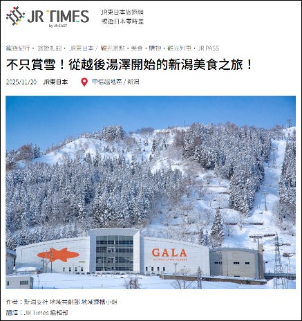 台湾訪日旅行者向け情報サイト「JR TIMES」への掲載