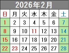 2026年1月24日(土)~2026年2月28日(土)のうち、毎週土曜日・日曜日