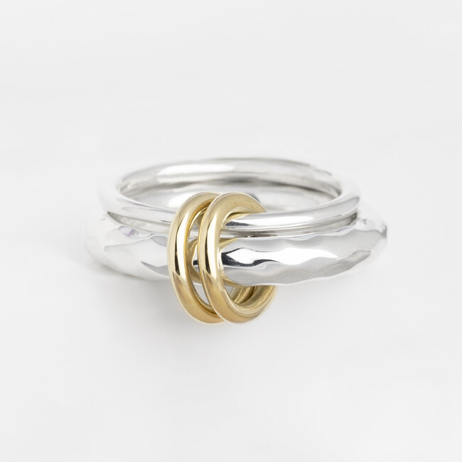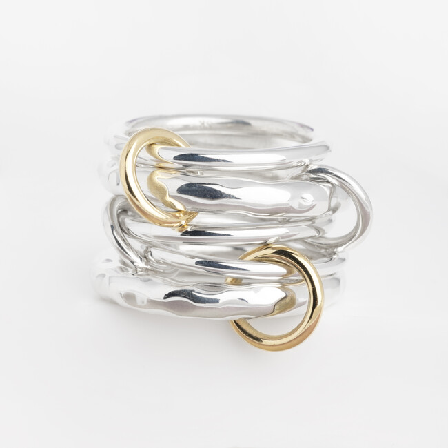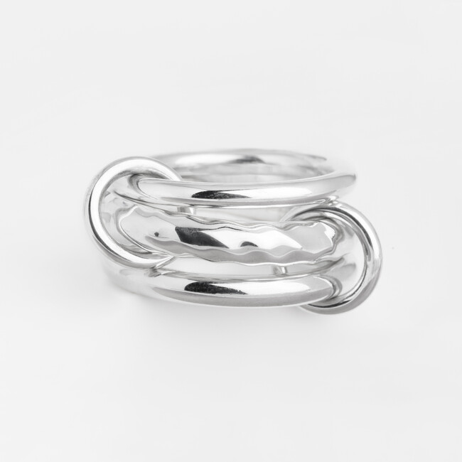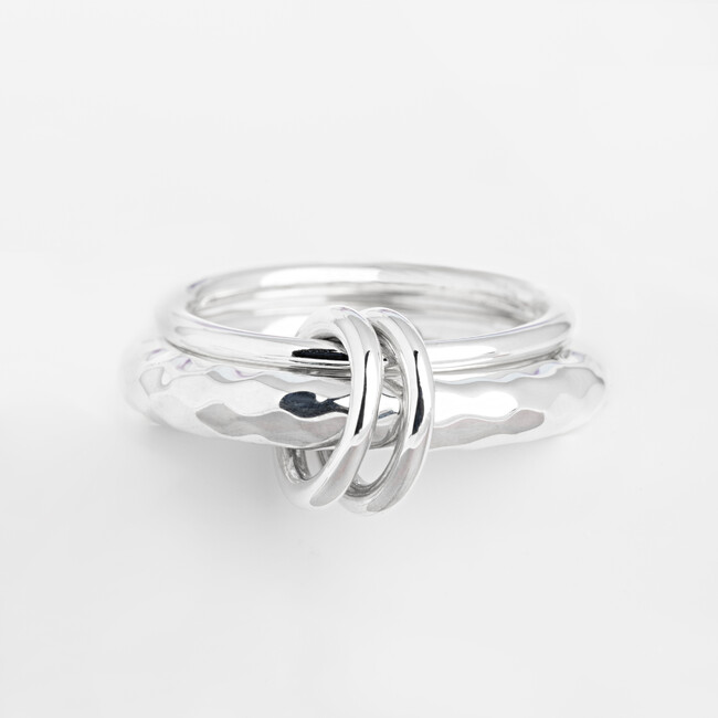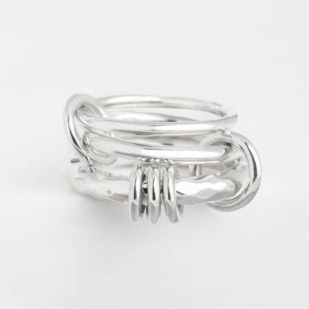 重ね着けができたり複数の指に連結して着用できるように構成されたその革新的なデザインは、ボリューム感がありながらもモダンでクリーンな軽やかさを表現しています。