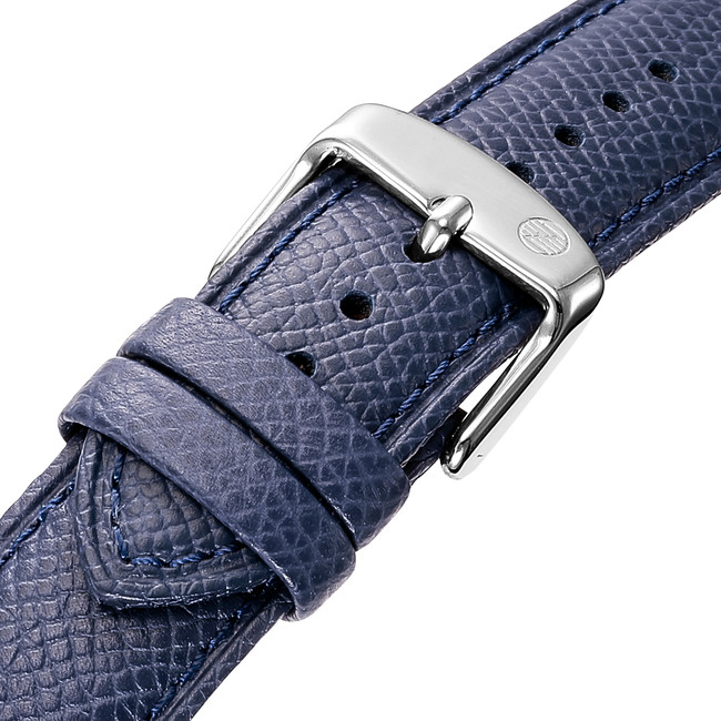 飛行船を模した湾曲フォルムで形成された古典的フェイスの魅力を、「クロムタンニング」により伸縮性・弾力性、吸水性に優れる「ワインハイマー」社製高級レザー「Waprolux」が引き立てます。