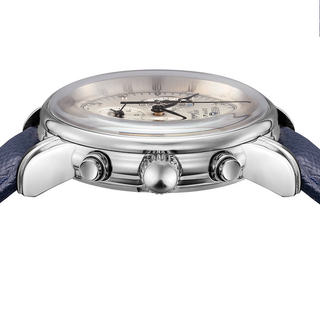 飛行船の機体をイメージし、ドームガラスとボンベダイヤル、ツェッペリン型ケース、それぞれが柔らかなアーチを描くように湾曲した設計でデザインされています。そのため、光の屈折によって異なる表情を楽しめます。