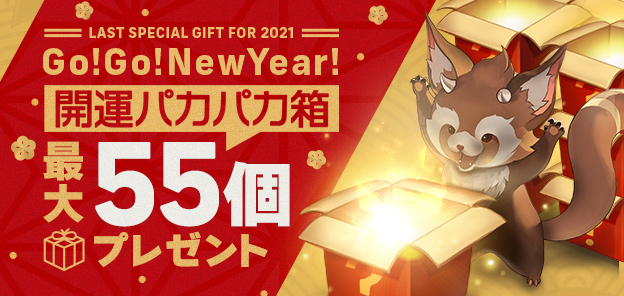 年末年始にかけて実施されるイベントに参加すると、なんと「開運パカパカ箱」が最大55個入手できる大チャンスです。「開運パカパカ箱」は使用すると、大吉・吉・小吉・中吉・凶の中からランダムで1つ箱を獲得できます。ハズレは無く、各箱からは複数のアイテムが獲得できる、おみくじ感覚の楽しいアイテムとなっております。
