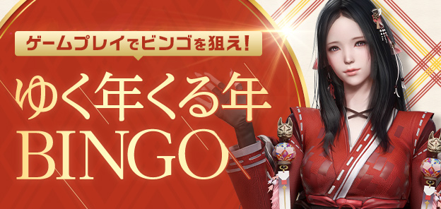 ゲーム内で様々なコンテンツをクリアしてBINGOを目指す「ゆく年くる年BINGO」が開催されます。BINGOを達成するとキャラクターの強化に役立つ「刻印書」や装備が強化できる「再錬素材」が獲得できます。