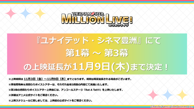 『ユナイテッド・シネマ豊洲』にて11/9(木)まで第1~3幕の上映延長が決定!