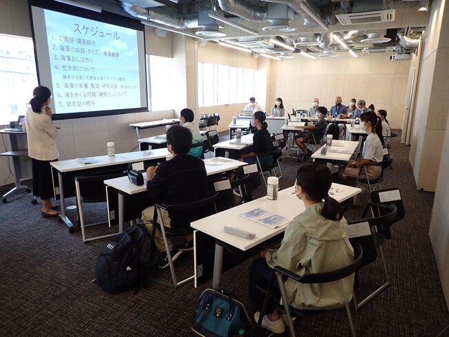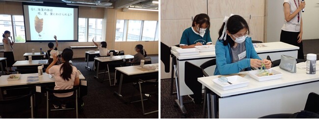 水産加工食品を中心に幅広く製造・販売している株式会社なとり(以下、なとり)と連携して、東京都北区の中学生を対象に「海藻」をテーマとしたイベントを実施しました。イベントでは、植物と対比しながら海藻について理解を深めたり、本物の海藻を手に取って触ったり、海藻おしばを作ったりといった体験をし、さらに海藻をめぐる環境問題「磯焼け」について知り、自分たちと海の環境との関わりについて考えることができました。受講後、晴れて海のジュニアティーチャーとして認定された中学生は、今後、海洋教育の担い手としてさまざまな取り組みに参加することが期待され、10月8日(土)に実施予定のイベントでは特別講師として活躍する予定です。