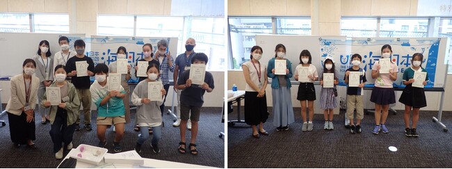 最後に、受講生に認定証を授与しました。一人ずつ今日の感想を聞いたところ「磯焼けについて初めて知ったので、もっと調べてみたい」「海藻のことを、おしばを作ったり分光器で光を見たりしていろいろ知れてよかった。藻場再生の取り組みについて調べてみたい」など、新たな発見や気付きが得られ、環境問題への意識が芽生えた様子がうかがえました。