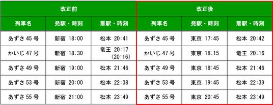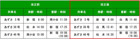 (2)大糸線と直通する特急「あずさ」の運転時刻および運転区間を変更します。