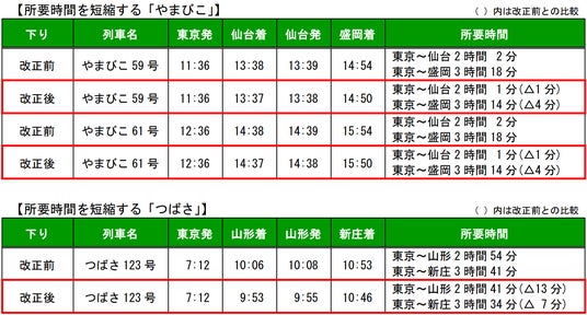 「やまびこ」、「つばさ」の一部列車の運転時刻を変更し、速達性を向上します。