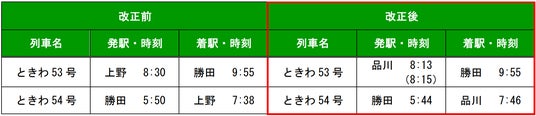 上野駅発着の特急「ときわ53号、54号」を品川駅に延長し、 利便性を向上します。これにより、常磐線特急は全て品川駅発着となります。