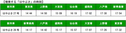 下りは東京駅14時台発、上りは東京駅17時台着の「はやぶさ」を東京~新青森間で1往復増発します。