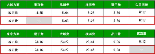 4.夜間作業時間の拡大のため、横須賀線の初終電を見直します