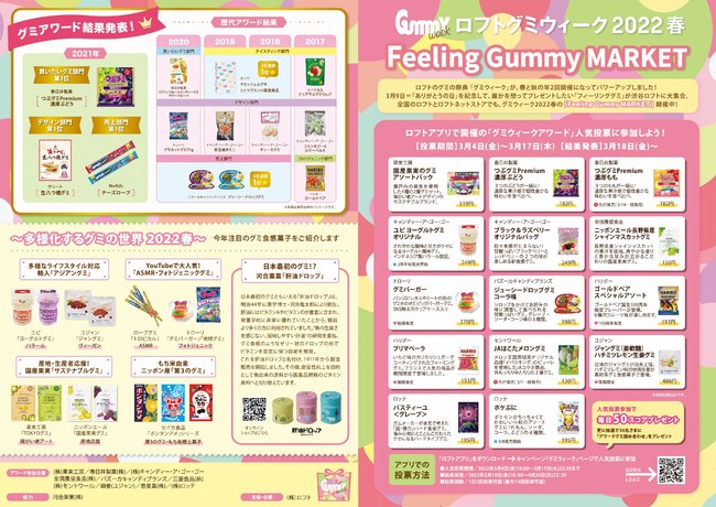 *ロフトアプリの人気投票に参加すると、抽選で30名様にアワード参加のグミ詰め合わせをプレゼント。1日1回、14日間投票できます。