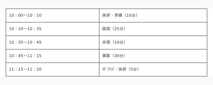 ■当日のタイムテーブル例(10:00~11:20の場合)