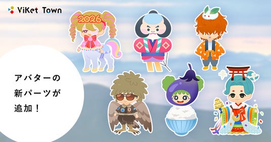 「ViKet Town(ビケットタウン)」では自分となって働くアバターが存在します。アバターには、頭、髪、目、口、服装、数種類の初期パーツから選択する事ができ、理想とする自分を生み出す事が可能です。 アバターを通してのコミュニケーションは、年齢、国籍、性別、見た目、生まれ持ったルーツによる様々な偏見をなくし、 純粋な気持ちで仲間とのプロジェクトの成功を目指す事ができます。 自分に自信がない人でも、働く新たな自分を生み出すことで、コミュニケーション能力の向上も期待でき、異空間で働くアバターは、様々なアイテムを身に着け、仲間とのコミュニケーションのきっかけともなります。1月は、2026年のはじまりを盛り上げる新パーツが登場!午年イメージの衣装や、お正月らしい衣装など、縁起のいい新パ―ツで楽しく季節をすごそう!