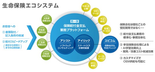朝日生命は、保険業界において各社共通の課題である給付金支払業務の効率化において、各社が共創し業界発展を目指す「生命保険エコシステム」にも参画。これにより、同エコシステムへの参画は5社目となります。