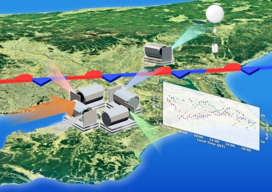 千葉大学大学院融合理工学府博士前期課程2年生の溝渕隼也氏と環境リモートセンシング研究センター(CEReS)の入江仁士教授ら研究グループは、同グループが展開する国際リモートセンシング観測網「A-SKY」で用いられる多軸差分吸収分光法(A-SKY/MAX-DOAS法)(注1)を活用することで、線状降水帯など集中豪雨の引き金となる大気下層における水蒸気濃度の「水平方向の不均一性 (場所ごとの違い)」が、大気が不安定な時ほど顕著になる傾向を6年間の長期連続観測により世界で初めて明らかにしました。