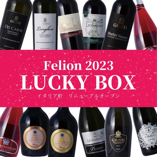 NSGグループの愛宕商事株式会社(本社:新潟県新潟市、代表取締役:高橋克郎)が運営する輸入ワイン販売店「Felion(フェリオン)」にて、ホテルイタリア軒リニューアルを記念して、赤ワインのお楽しみ袋(1袋1本入り 税込:2,090円)とLUCKY BOX(6本セット)を3月10日(金)より販売致します。