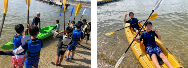 シーカヤックを上手に漕ぐにはどうしたら良いか考え、ペア同士で協力しながら三河湾を堪能する姿を見ることができました。