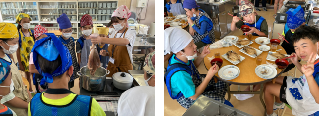 豊かな海が育む生命を味わおうをテーマに三谷水産高等学校の生徒さんと一緒に昼食を調理しました。