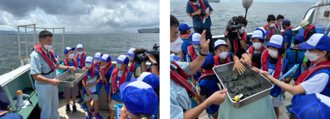 埋立等により干潟・浅場・藻場の多くが失われ、海の環境は年々悪化していることを船上観察から学び、みんなで海の現状を知ることができました。