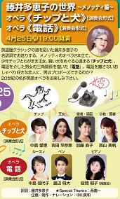 『藤井多恵子の世界~メノッティ編~オペラ《チップと犬》[演奏会形式]オペラ《電話》[演奏会形式] 』