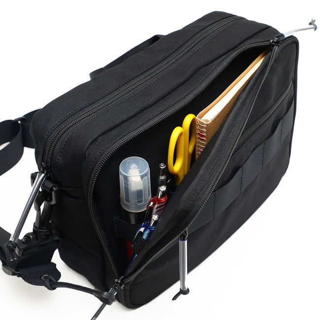細かな使い勝手を叶えるために、「MADE IN JAPANの技術で造り上げたフィッシングバッグ・カジュアルバックを中心に、素材にこだわり創意工夫を盛込んだアイテムを製造・販売するFULLCLIP」に依頼。細かな縫製はフィッシングバッグに用いる細やかなテクニックを活かしています。また、ショルダーストラップには「ストラップの伸縮操作をクイック&スマートに!」する「JETGLIDE(R) ジェットグライド」を採用し、面倒なショルダーベルトの伸縮操作のストレスを軽減しています。