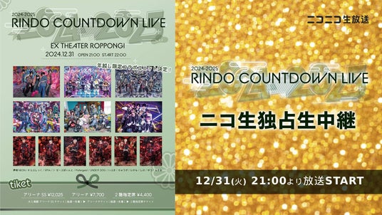 2024年12月31日(火)大晦日にEX THEATER ROPPONGIにて開催される、年越しカウントダウンライブ「RINDO COUNTDOWN LIVE 2024-2025 ニコ生独占生中継」をニコニコ生放送にて独占生中継いたします。