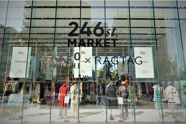 ユーザーをつなぐPOP-UP型イベント「246st.MARKET(ニイヨンロクストリートマーケット)」を開催いたしました。「GOOD FOR FUTURE」をテーマに6回目の開催となった今回は、来年40周年を迎えるメンズブランドTAKEO KIKUCHI(タケオキクチ)とユーズドセレクトショップRAGTAG(ラグタグ)をフィーチャー。ワールドプラットフォームサービスが空間創造を手掛けた会場にはRAGTAG商品センターにてクリエイターが厳選した400点のユーズドアイテムにRAGTAGスペシャルセレクトの400点を加えた約800点が一堂に並びました。