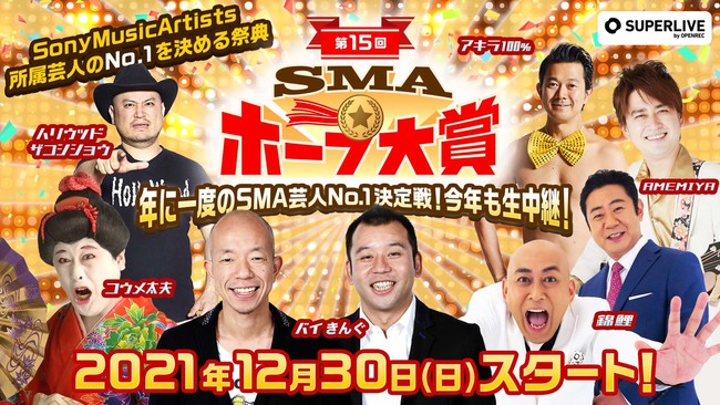 株式会社CyberZ(本社:東京都渋谷区、代表取締役社長:山内隆裕)が提供する動画配信プラットフォーム「OPENREC.tv」(オープンレックティービー)は、2021年12月30日(木)18:00~SMA主催のお笑いコンテスト「第15回SMAホープ大賞」の決勝戦を独占生配信することをお知らせいたします。