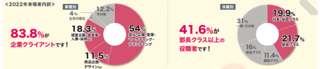 「企業クライアント」「部長クラス以上の決済権者」が多数来場。「リアル」で「直接商談」できる場です。