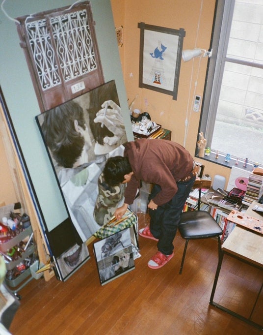 そして、鮮やかな色を極力使用しないことについて「視覚的でありながらも控えめで、大気のようなものにしたい」と考えていると話します。「人はどこにいても常に監視されている」対象であり、それを知りながらも気づかないように生きる現代のムードを示すと考える彼のVHSカメラの美学と、彼自身の日々の出来事や関心、そして鑑賞者の考えを強制しないAmbient Music Paintingの作品群は、私たちに穏やかでメランコリックな感覚を与えます。