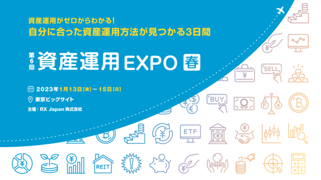 日本最大の見本市主催会社 RX Japan株式会社 (本社:東京都新宿区、代表取締役社長:田中岳志)は、2023年1月13日(金)~15日(日)の3日間、東京ビッグサイトにて「第6回 資産運用EXPO【春】」を開催します。