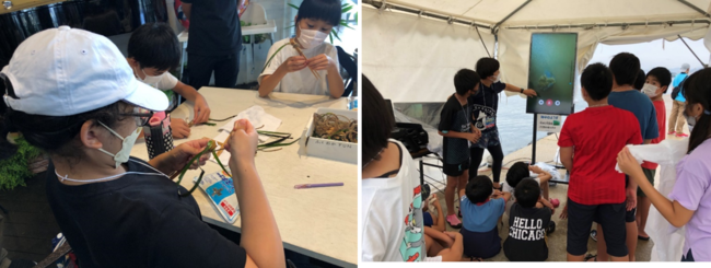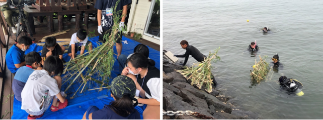 自分の手で作ったアマモの苗を植え、藻場の役割を学ぶ
