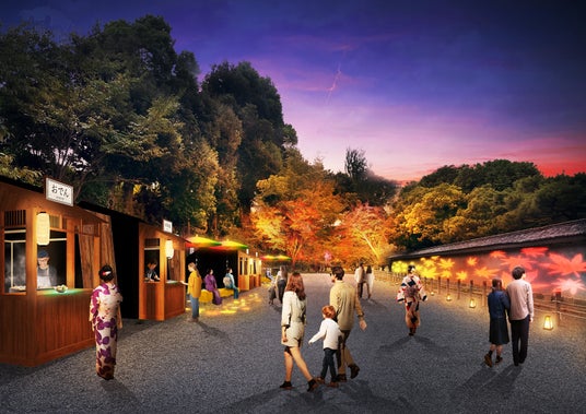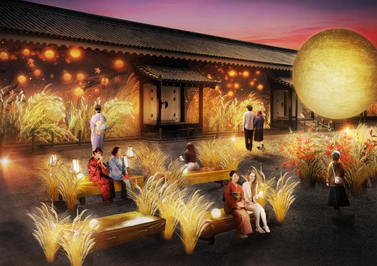 二条城は、歴史にも残る、後水尾天皇を迎え豪華にもてなした「寛永行幸(行幸は天皇の外出のこと)」や、大正天皇の即位の「大饗宴」が行われた“おもてなしの城”。2024年の秋は、「秋の豊穣祭」をテーマに、クリエイティブカンパニーNAKED, INC.が来場者を「おもてなし」する新イベントを開催いたします。日本の秋の恵みを、テクノロジー、香り、食、音など様々な要素を組み合わせ、体験型アートで表現。二条城にまつわる様々な食を楽しみながら、彩られた夜の二条城を巡る体験型アート展です。鑑賞のみのチケットもご用意していますので、飲食抜きでもお楽しみいただけます。