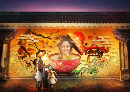 台所前庭 「YumYum Dive Photospot」 ネイキッドのフードビバレッジチームがプロデュースするFOODを購入して、台に置くとその食べ物と自分の顔が一体になった映像が映し出されるフォトスポット。※他店舗で購入したものでも体験は可能ですが、購入したものに紐づいた体験を出来るのはフードアンドビバレッジプロデュースの商品のみとなります。