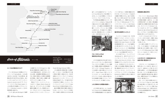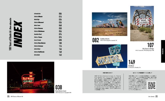 巻末には実際にルート66 を走る際に便利なルートガイドを23ページに亘って詳細に紹介するなど、ルート66 のガイドブックとしても有効に活用できます。