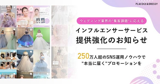 近年、結婚式の実施件数やブライダル業界の広告効果低下が課題とされる中、SNSでの情報収集が当たり前になったことで、従来の広告だけでは認知拡大や集客に限界を感じている企業様が増えています。特にウェディング業界では「誰に、どう届けるか」がこれまで以上に重要視されています。こうした課題に対して、プラコレではフォロワー250万人超のSNS運用ノウハウを活かし、ご好評いただいている『インフルエンサーサービス』の提供を強化。