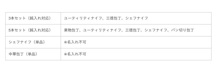 ● 複数の包丁を注文された場合はすべて同じ文字内容となります。包丁ごとに内容を変更することは致しかねます。