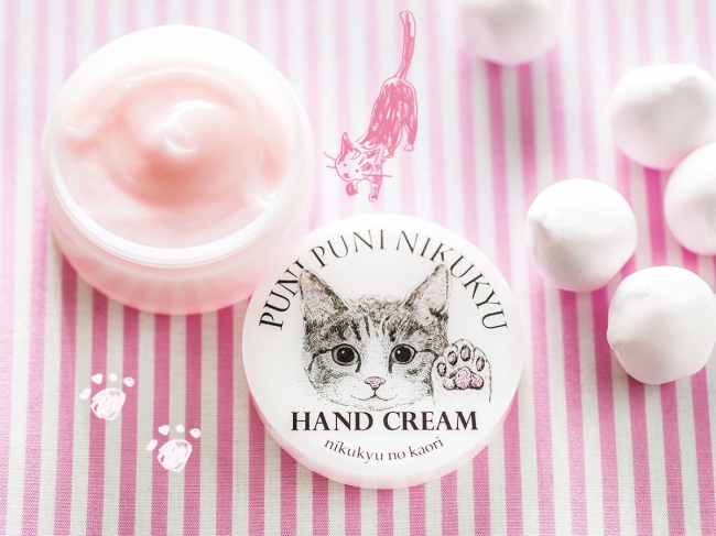 肉球の香りをいつも嗅いでいたい。そんな気持ちにこたえるため、お客さまアンケートでご意見の多かったポップコーンの香りをベースにクリームとして使いやすい甘い香りを加えたハンドクリーム。さらにリアルな肉球感を求めてぷるぷるの感触や愛らしいピンク色も再現。ヒアルロン酸やコラーゲンも配合なのでたっぷり保湿して肉球みたいなプニプニしたくなる手肌に。