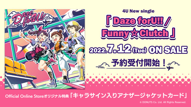 2022年5月8日(日)より開催中の全国ライブツアー「4U 2nd Live Tour Daze forU!!」で初披露となった4Uの新曲『Daze forU!!』及び『Funny☆Clutch』を両A面のシングルCDとしてリリースすることが決定いたしました。