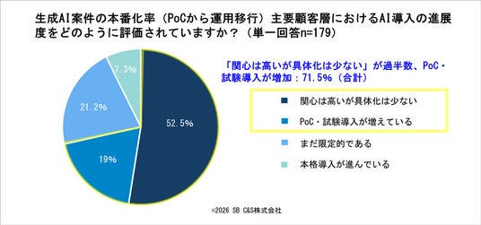AI導入は具体化進まず、PoC(概念実証)止まりが多数、本格導入は限定的